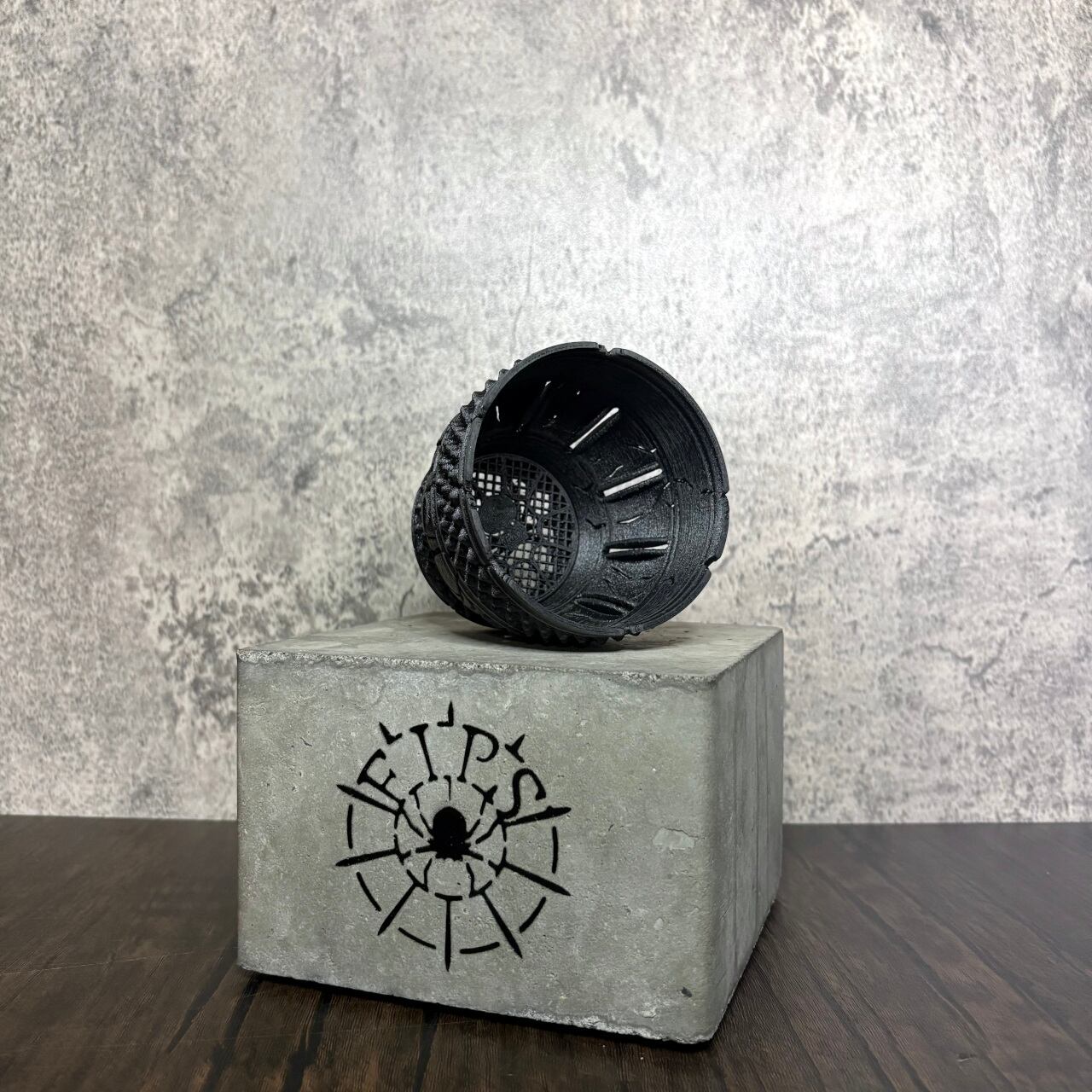 鉢底にはFIPS鉢の代名詞、蜘蛛のレリーフが施されており脱着式を採用することで植物の植替えがしやすい設計となっております