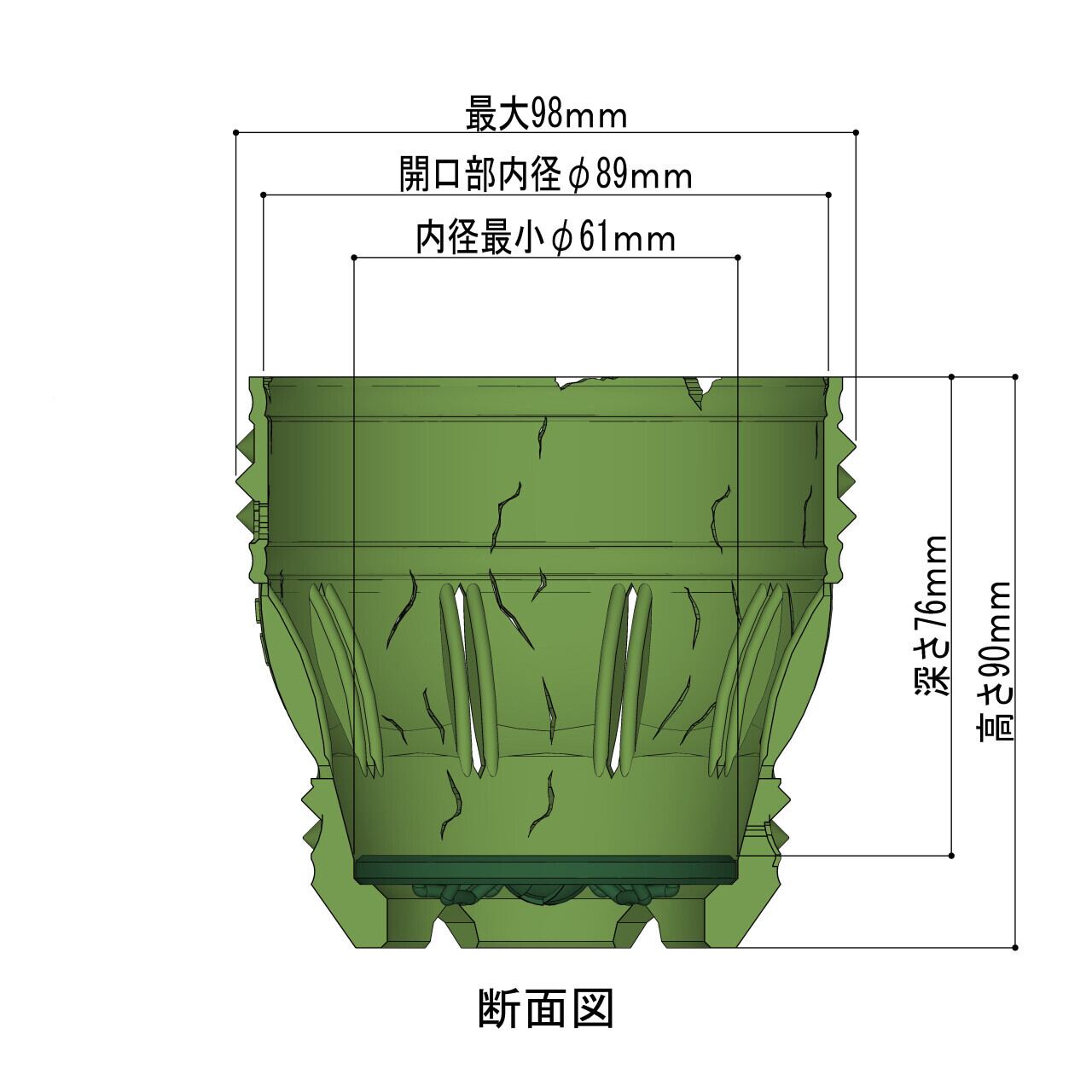 サイズ:内径φ89㎜・外径98㎜・高さ90㎜