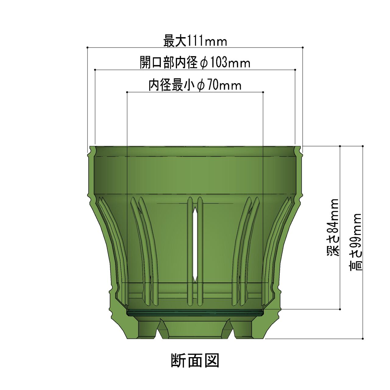 サイズ:内径φ103㎜・外径111㎜・高さ99㎜