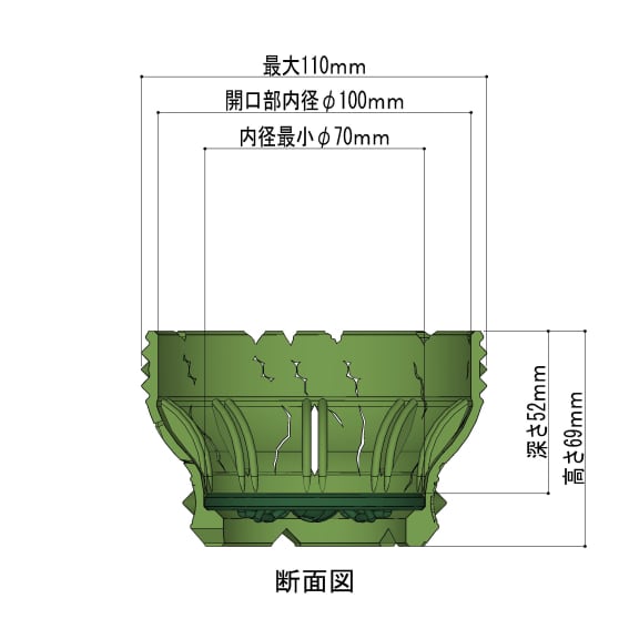 サイズ:内径φ100㎜・外径110㎜・高さ69㎜