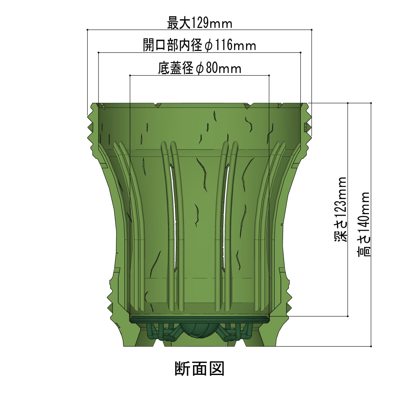サイズ:内径φ116㎜・外径129㎜・高さ140㎜