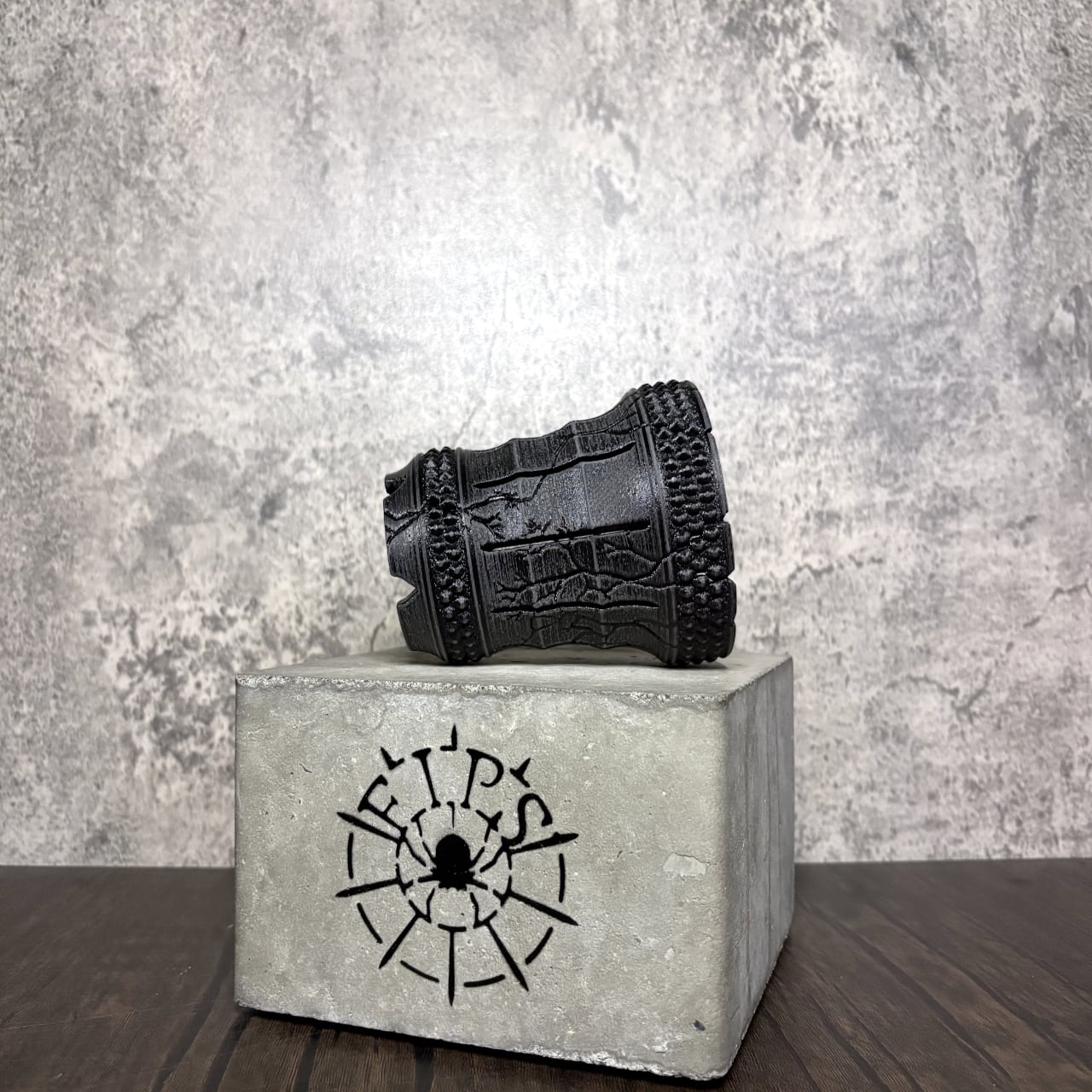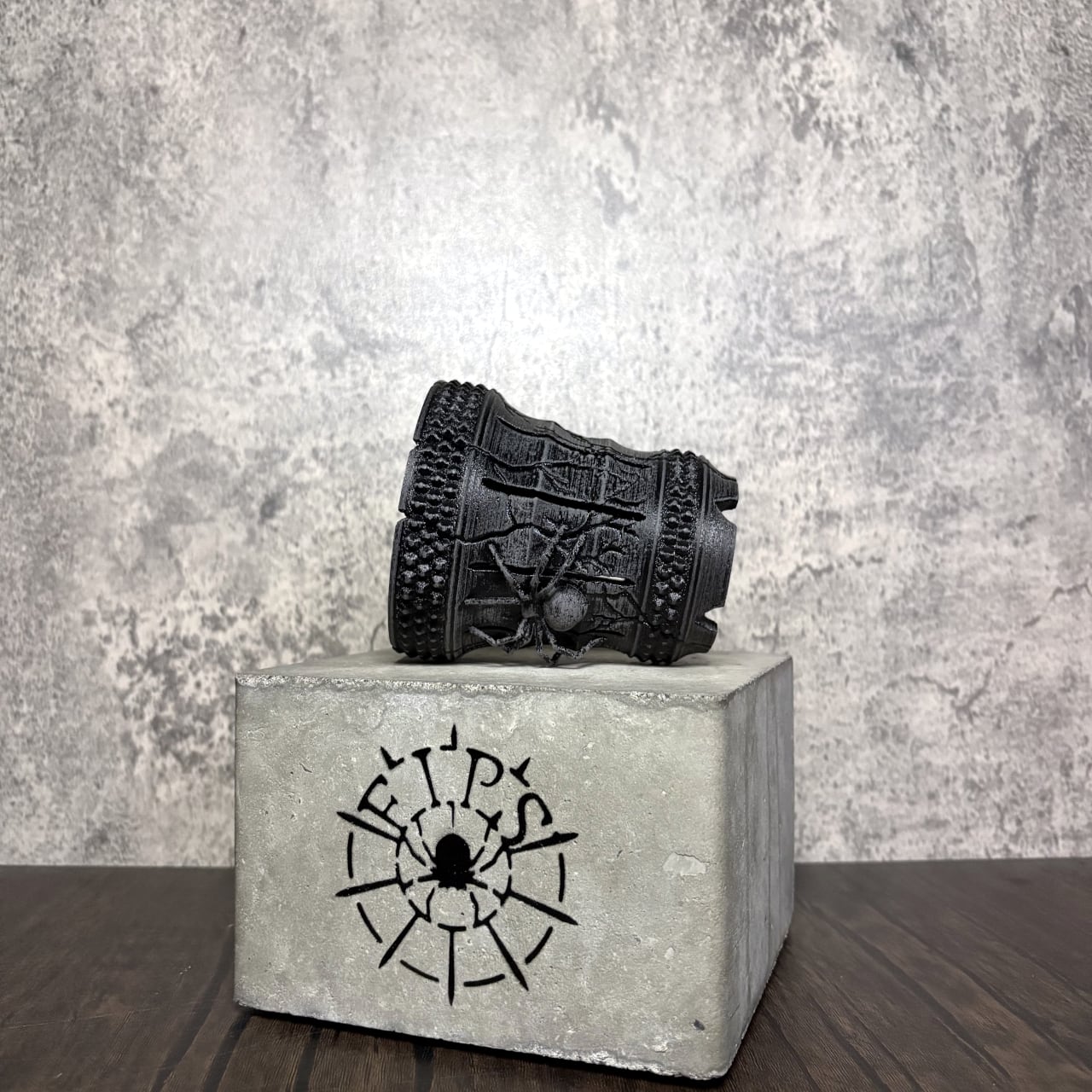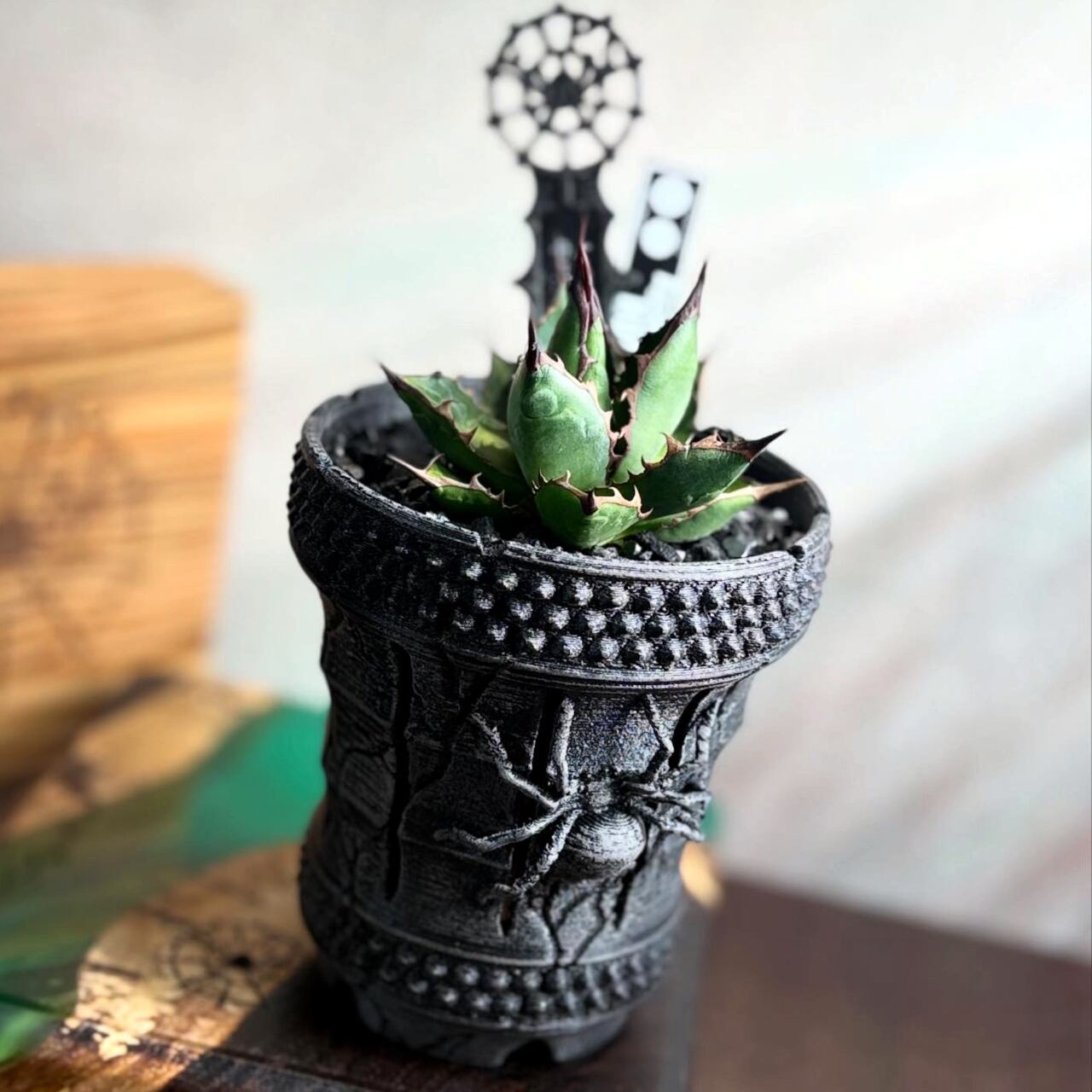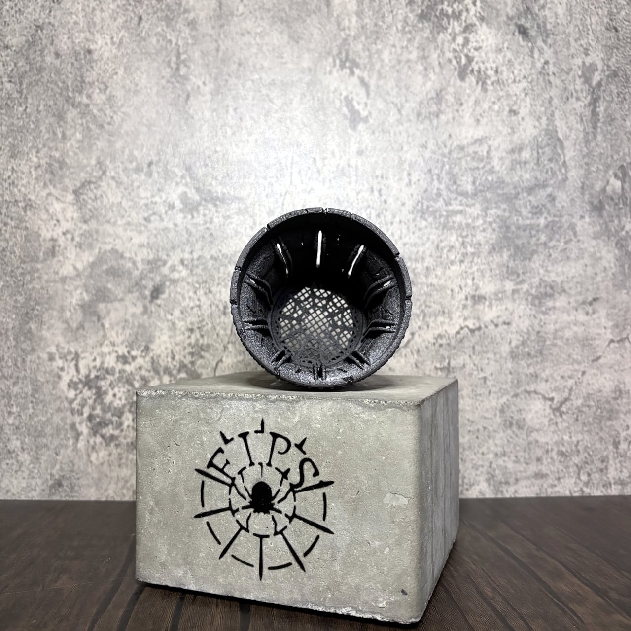 底部にはFIPSの象徴である蜘蛛のレリーフと大型脱着式底蓋を備え、植替えの容易さと排水性を両立。