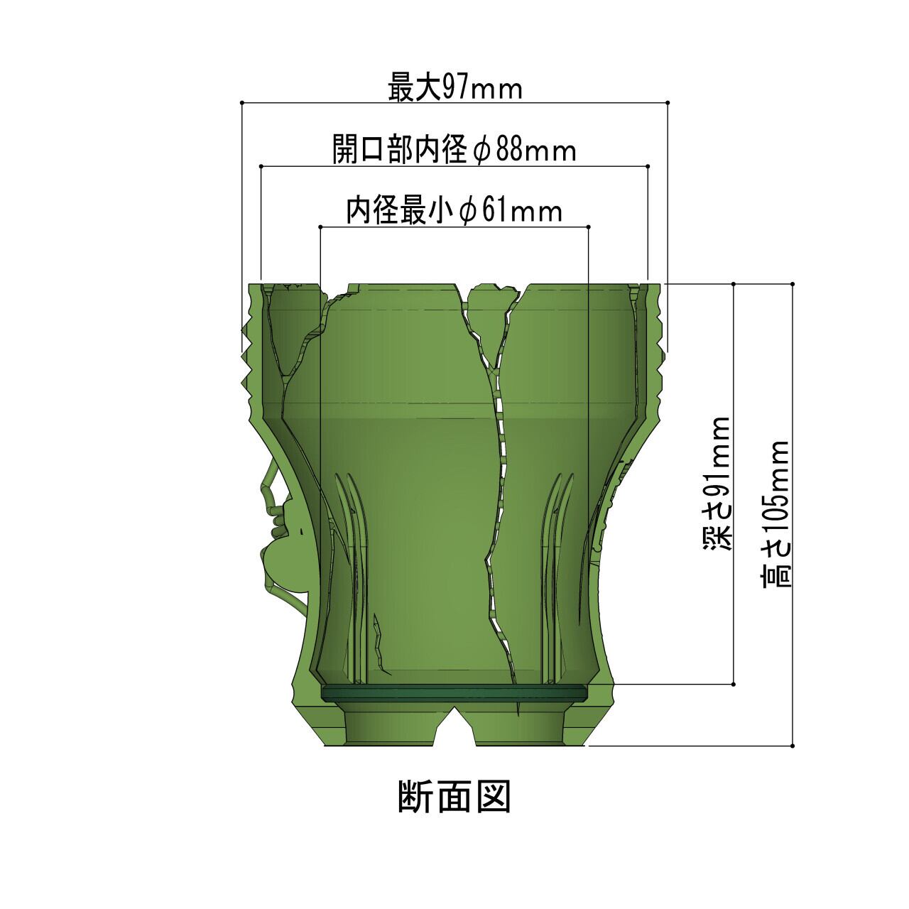 ・基本形は【灰神楽】をベースにしており、火鉢での過酷な環境下で使用し続けた朽ちた鉢(廃墟)の表情を再現